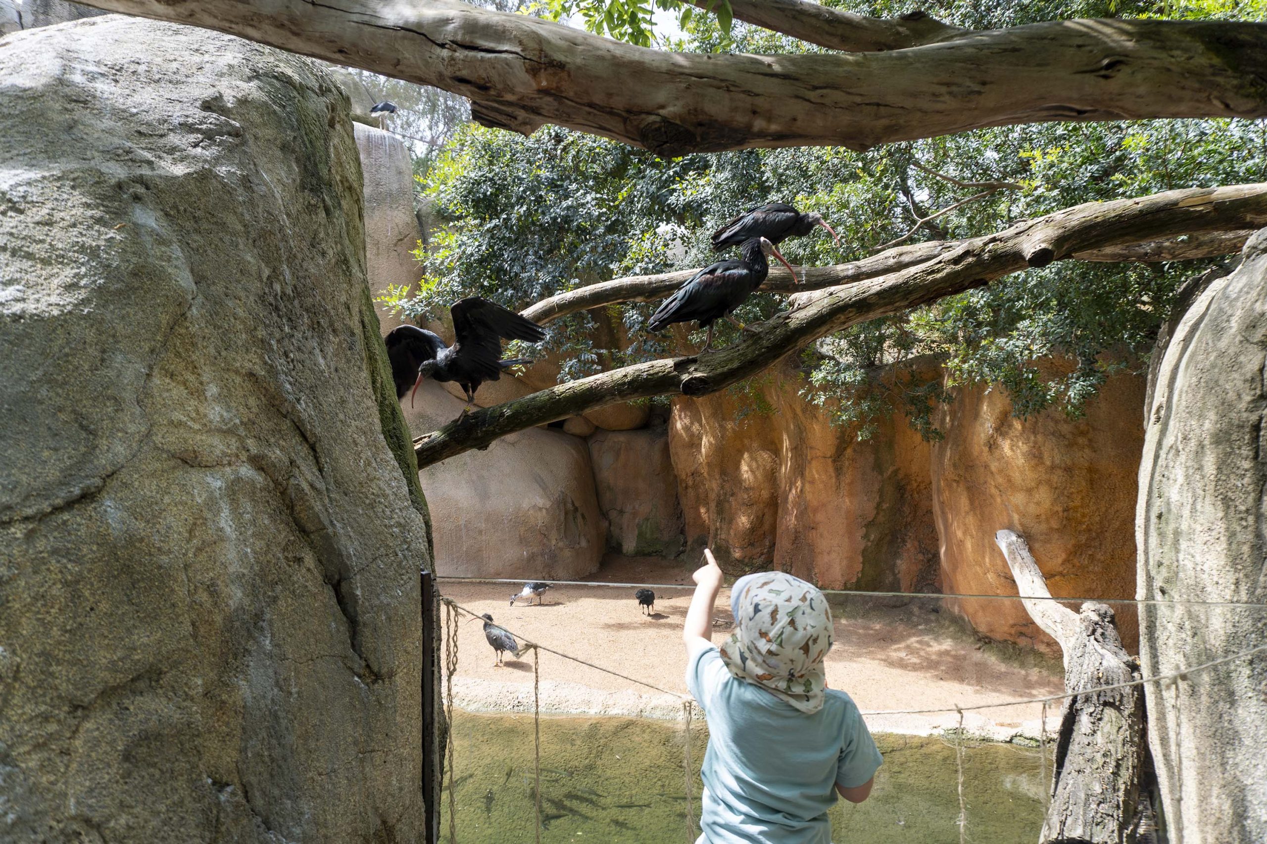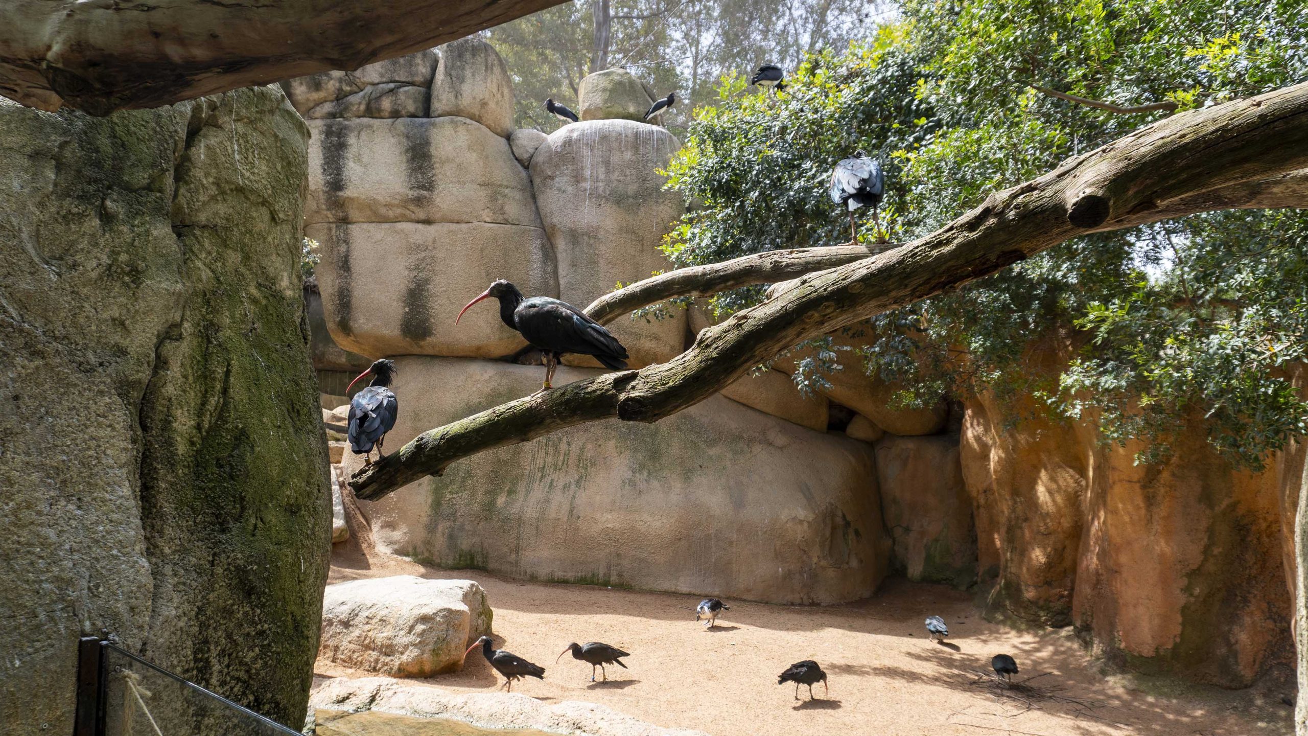 Quienes nos visitan pueden contemplar al ibis eremita en el espacio del Kopje, un entorno que recrea paisajes africanos y donde convive con otras especies en un hábitat sin barreras visuales. Es una oportunidad única para conocer de cerca una especie que, hasta hace poco, era imposible ver en Europa.